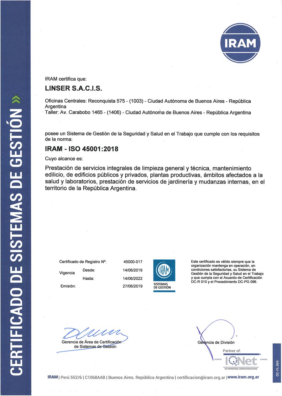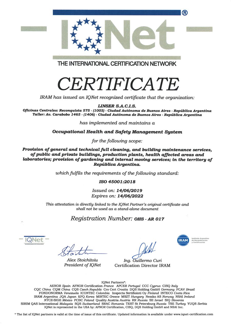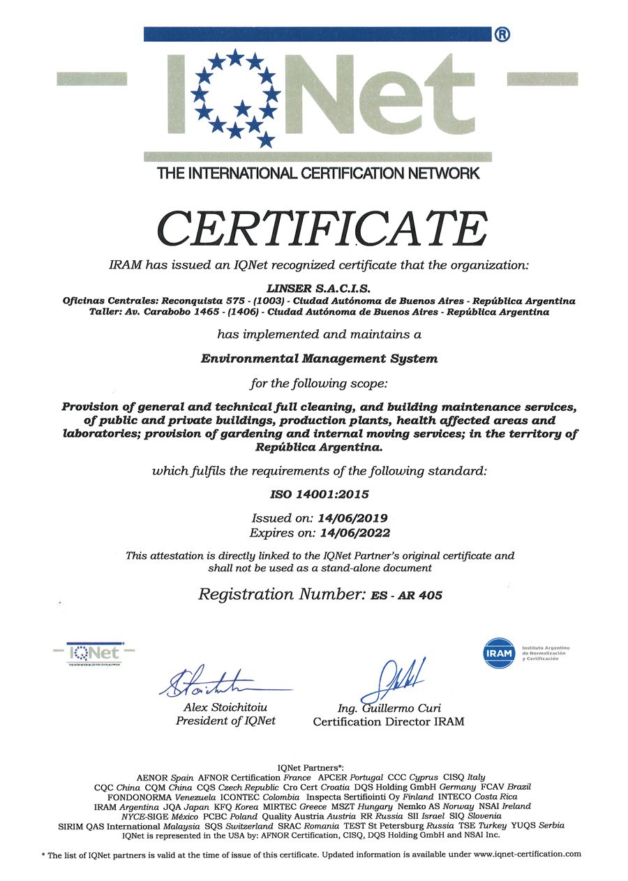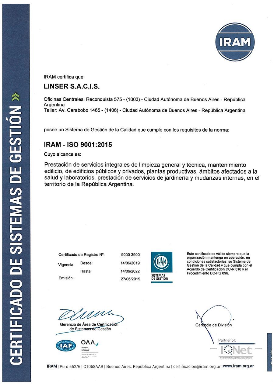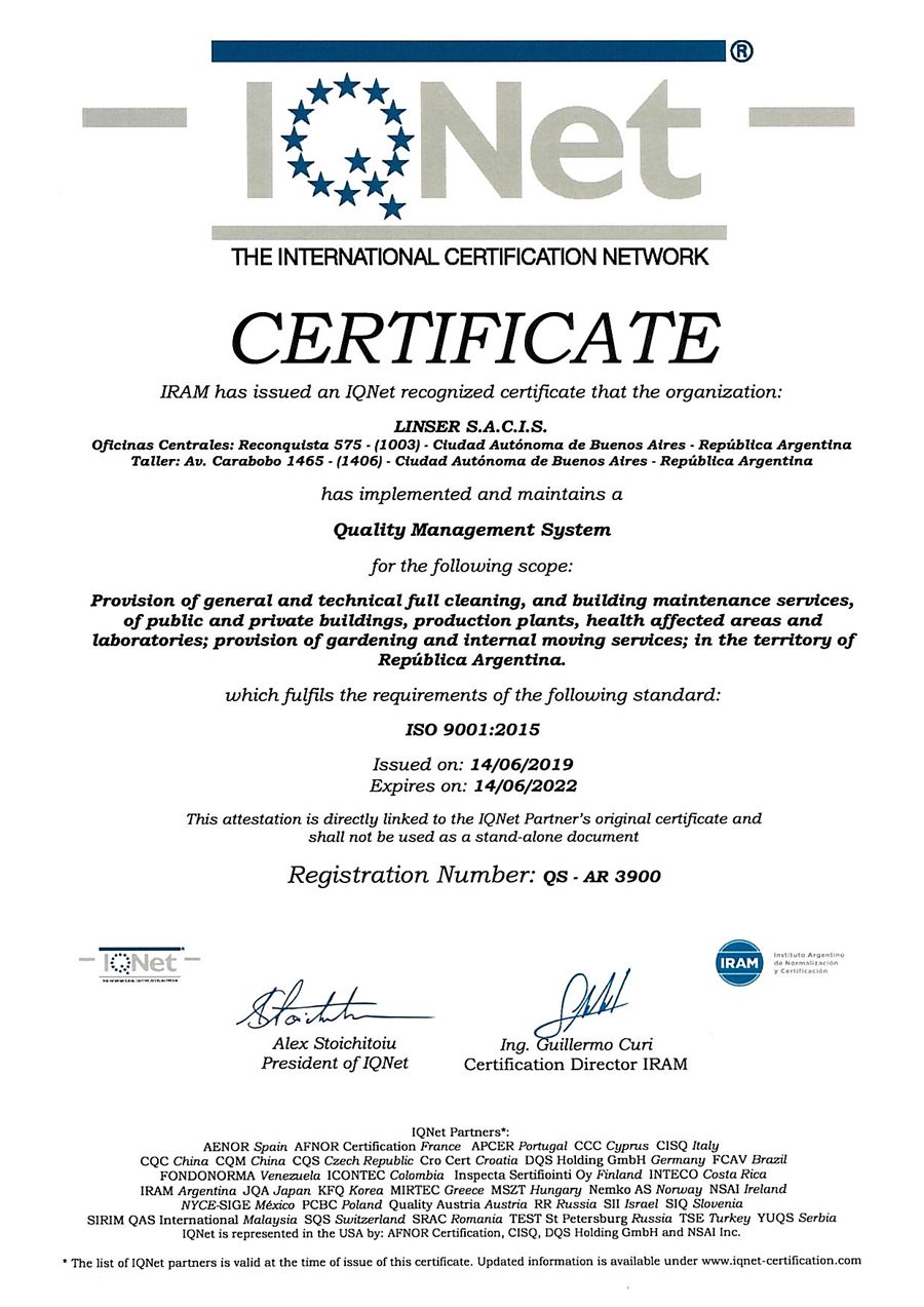 Avalado por las certificaciones de IRAM e IQNet.