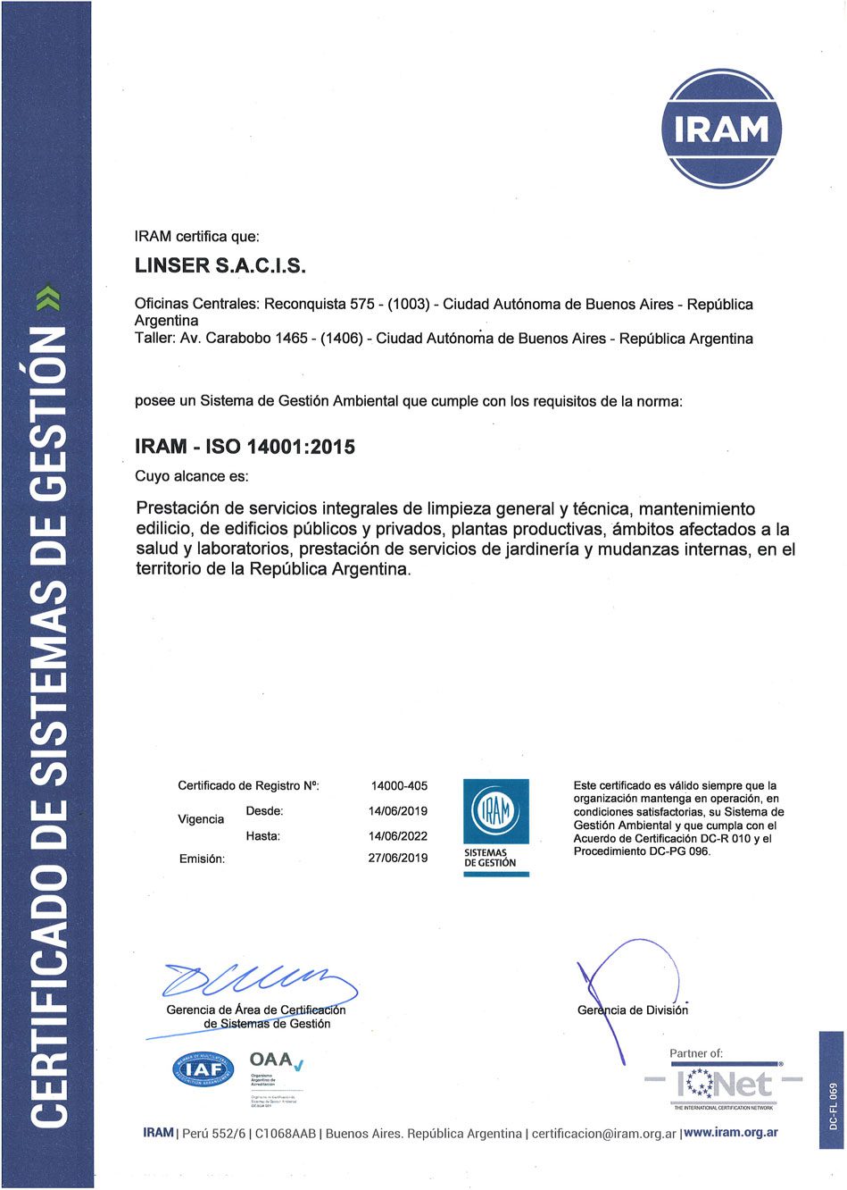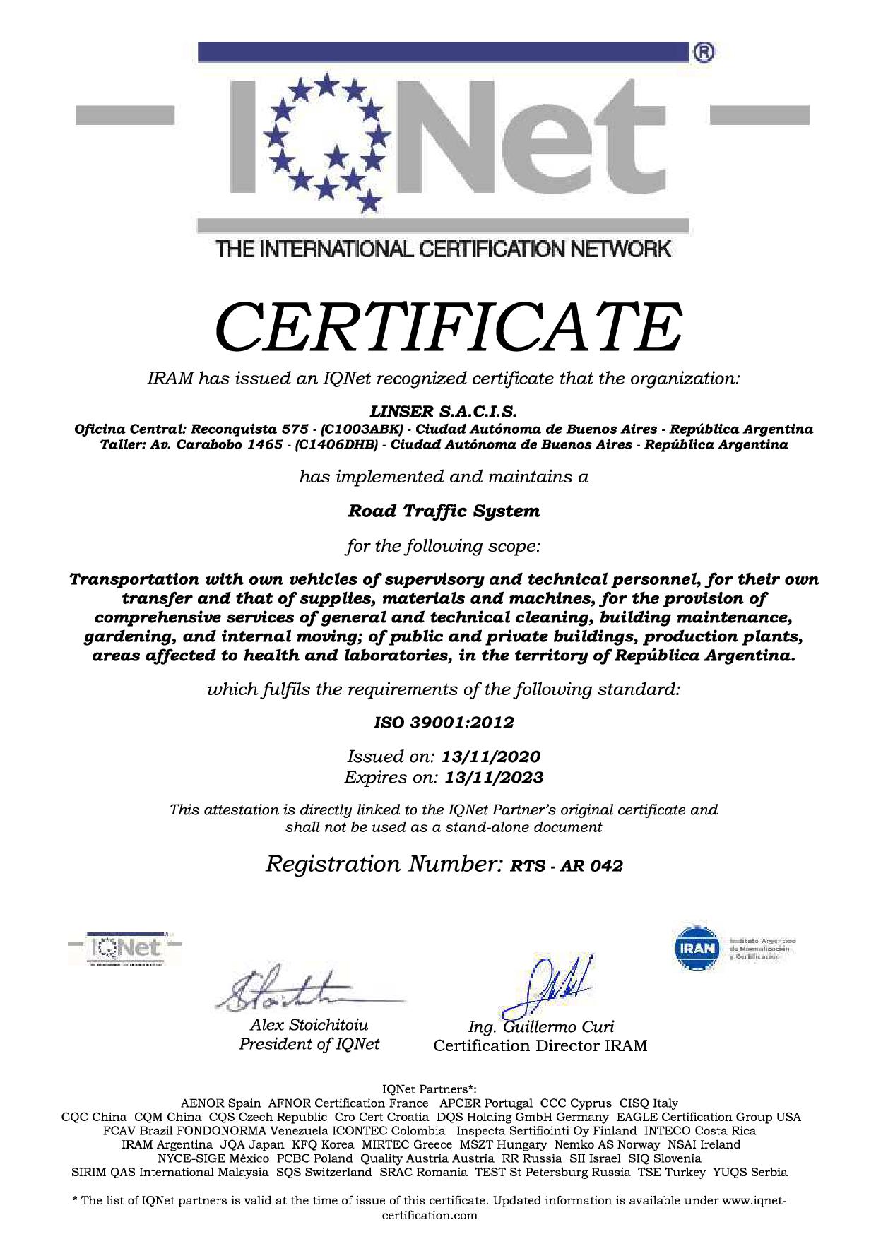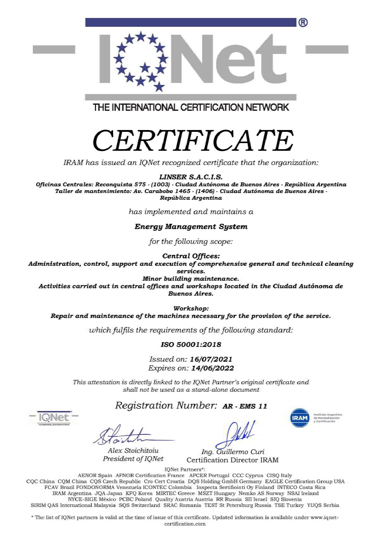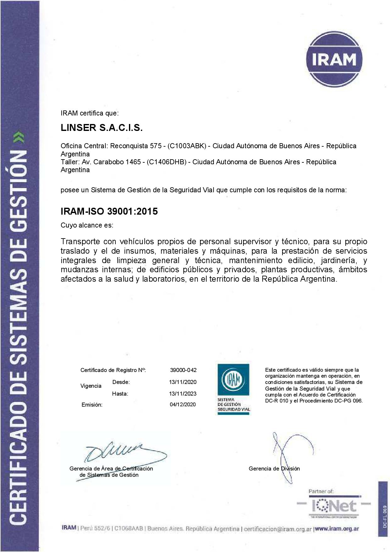 Avalado por las certificaciones de IRAM e IQNet.